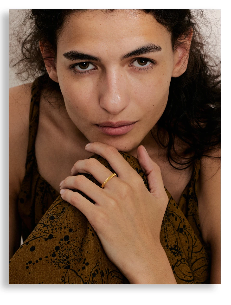 Disponible en doré ou en argent, cet anneau s’adapte aussi bien à une tenue habillée qu’à un look plus décontracté. Il peut se porter seul pour un rendu épuré ou accompagné d’autres bagues pour un effet plus affirmé.