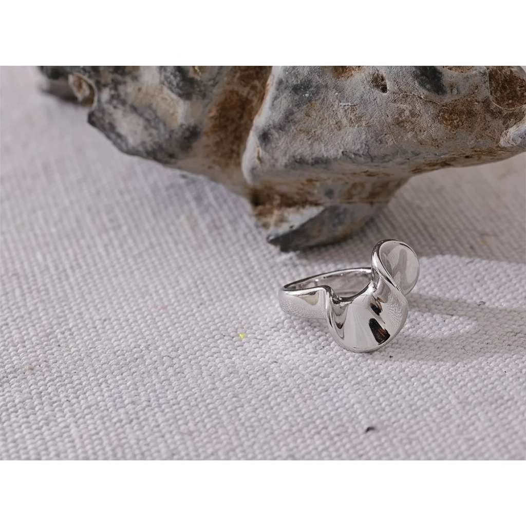 Son design, visible sur l’image, joue sur les volumes et les courbes. La surface polie renforce l’effet miroir et apporte une touche contemporaine. Cette esthétique minimaliste mais marquée permet d’associer facilement la bague à différents styles vestimentaires, du plus sobre au plus audacieux.