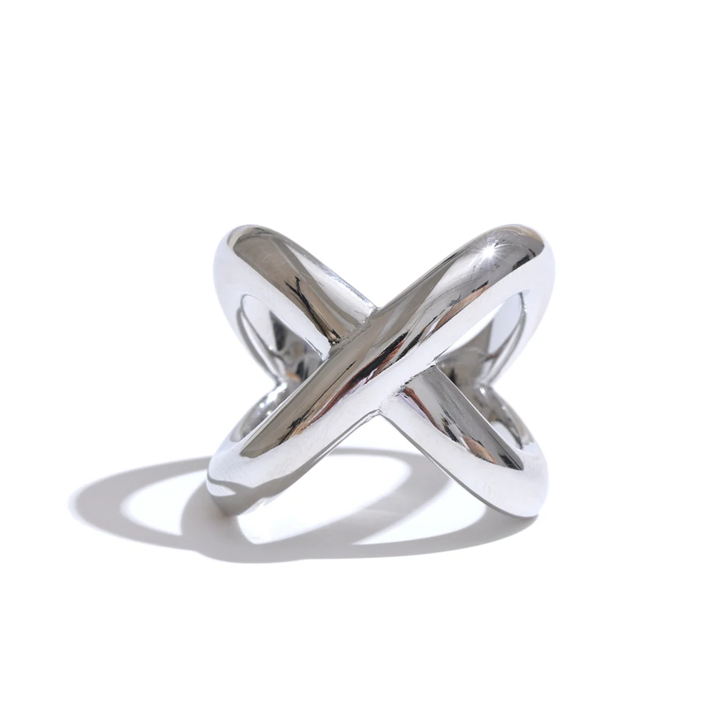 Le design de cette bague acier inoxydable femme argent repose sur une structure croisée audacieuse. Les courbes se rencontrent avec fluidité, offrant un rendu visuel contemporain. La partie la plus large, mesurant 17 mm, donne du caractère sans excès. Ce volume maîtrisé permet à la bague de se démarquer tout en restant élégante. Elle capte la lumière sous différents angles, ce qui renforce son aspect brillant et soigné. Ce style convient aussi bien à un look minimaliste qu’à une tenue plus marquée.