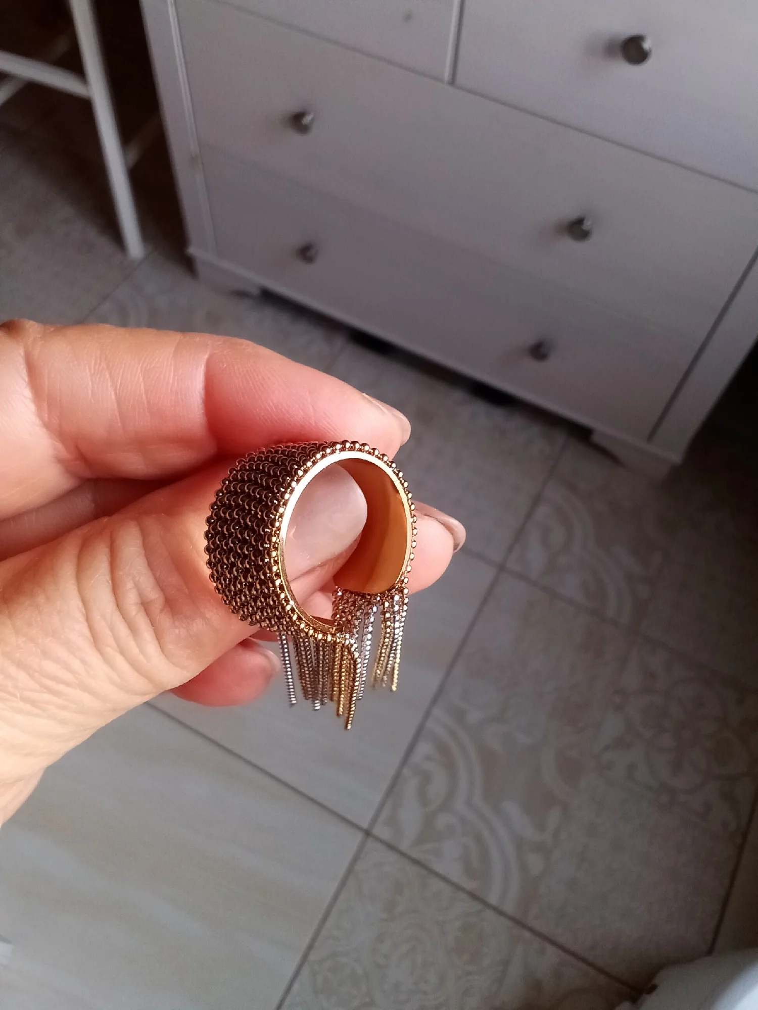 Très jolies bagues de qualité. J’en ai commandé deux, une dorée et une argentée, et les deux sont super belles. Elles se portent facilement avec différentes tenues. Je suis vraiment contente de mon achat.
