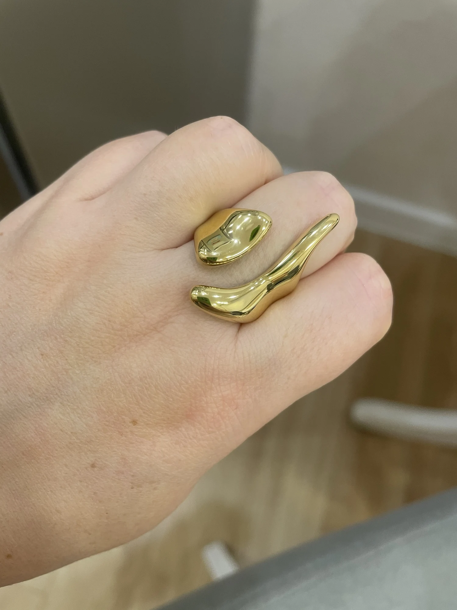 Le plaquage or 18 carats n’est pas là que pour l’apparence. Il apporte aussi une touche de raffinement qui met en valeur les courbes du design. La surface lisse reflète la lumière et accentue les volumes, ce qui donne au bijou une présence visuelle forte. En version dorée comme en version argent, la bague inoxydable garde une allure soignée et actuelle. C’est le genre de détail qui fait la différence entre un bijou banal et une pièce que l’on remarque vraiment.