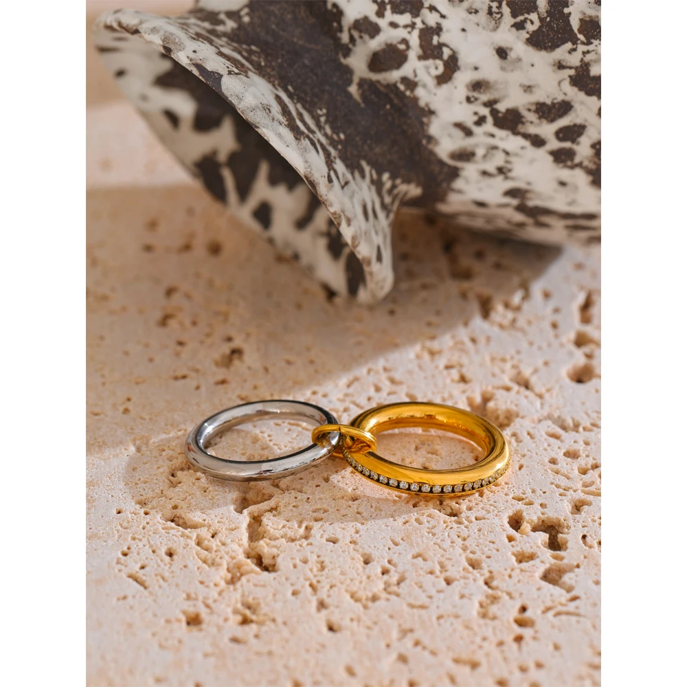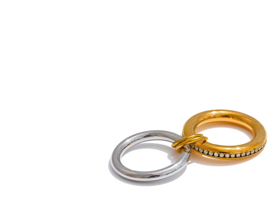 Les bagues inoxydables femme sont devenues un choix évident pour un usage quotidien. Elles ne craignent ni l’eau, ni l’humidité, ni les variations de température. Contrairement aux bijoux plus fragiles, elles conservent leur éclat sans entretien complexe. Ce modèle précis se distingue par son équilibre entre modernité et élégance. Le duo doré et argent permet de l’associer facilement à d’autres bijoux, sans faute de goût. L’incrustation en zirconium apporte un effet joaillerie tout en restant discrète.