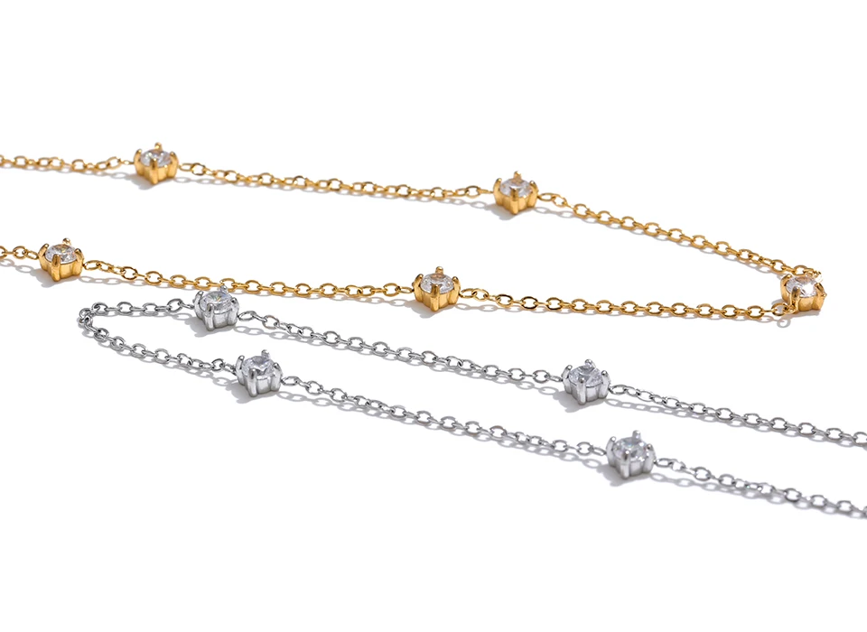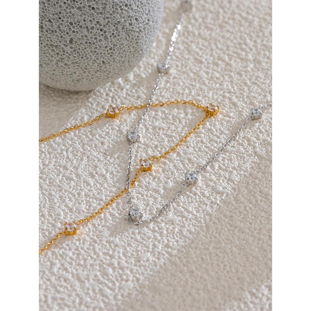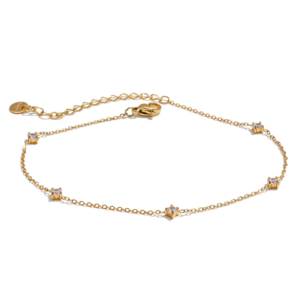 Le design de ce bracelet cheville acier inoxydable mise sur la finesse et l’équilibre. La chaîne délicate est ponctuée de zircones cubiques soigneusement serties, offrant de subtils points de lumière. Ce choix esthétique permet de porter le bijou seul ou en accumulation, selon vos envies. Il s’intègre naturellement à un style estival, bohème ou plus minimaliste.