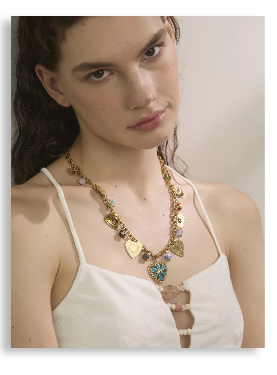Chaque charm a une forme précise. Cœurs, perles, motifs colorés. Les textures sont variées. L’ensemble crée un effet bijou travaillé. Le style rappelle les pièces décoratives. Le collier apporte une touche personnelle à votre look.