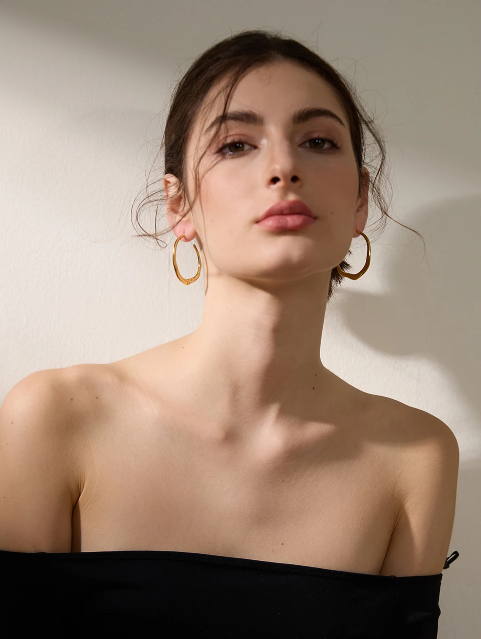 Le design de cette créole en acier inoxydable ne cherche pas la symétrie parfaite. Les lignes légèrement irrégulières, visibles sur l’image, donnent du relief et une sensation de mouvement. Ce choix esthétique permet de sortir des créoles classiques trop lisses ou trop fines. Ici, la boucle attire l’œil tout en restant portable au quotidien.