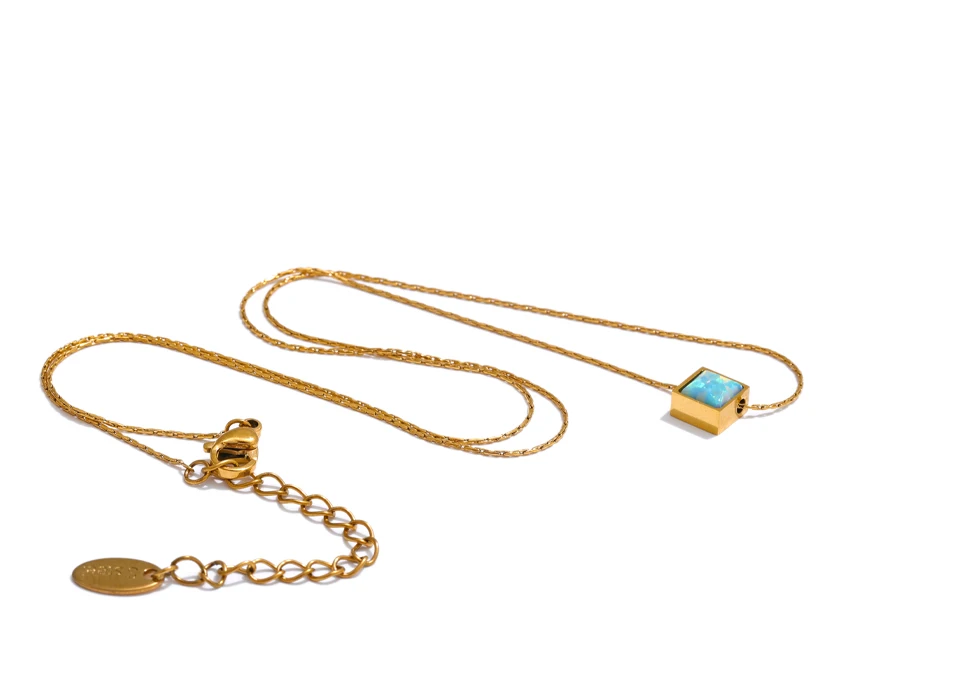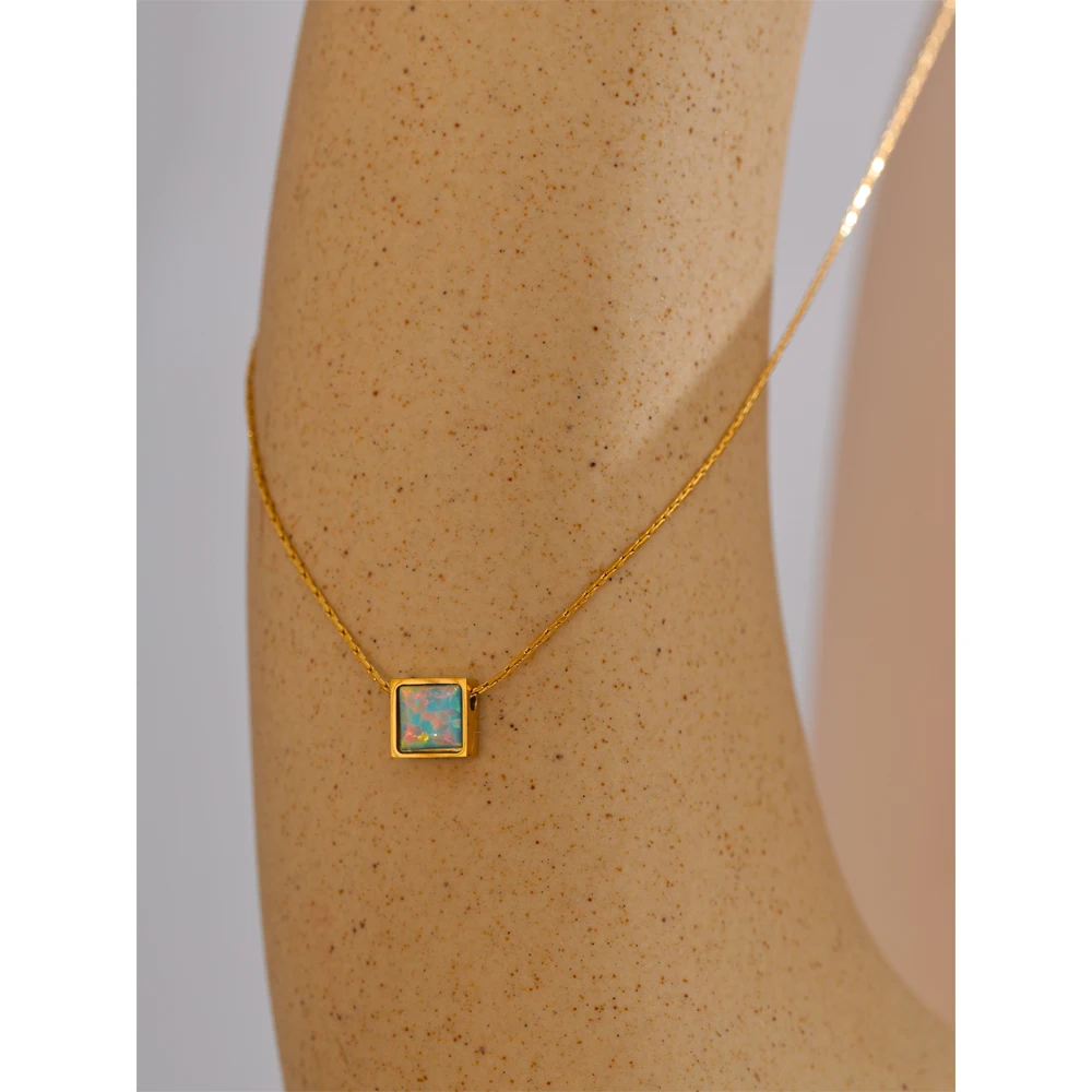 Ce pendentif en acier inoxydable séduit par son équilibre. La forme géométrique apporte une touche contemporaine, tandis que l’opale adoucit l’ensemble avec des nuances subtiles. Le plaquage or 18 carats, appliqué avec soin, apporte une finition élégante sans être ostentatoire. Ce bijou s’intègre facilement à une tenue du quotidien comme à un look plus habillé.