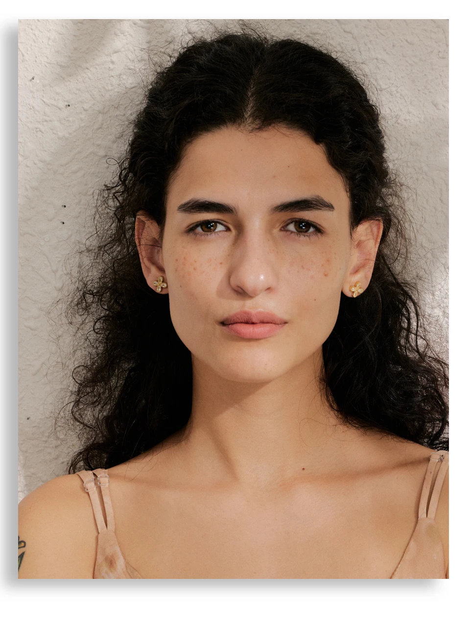 Le design s’inspire d’une fleur stylisée composée de quatre pierres en zircone cubique taillées en forme de goutte. Ce choix apporte une brillance subtile et élégante, sans effet excessif. La structure dorée met en valeur les pierres tout en conservant une allure moderne. Cette puce d’oreille acier inoxydable s’intègre facilement à tous les styles, qu’ils soient minimalistes, classiques ou plus habillés.